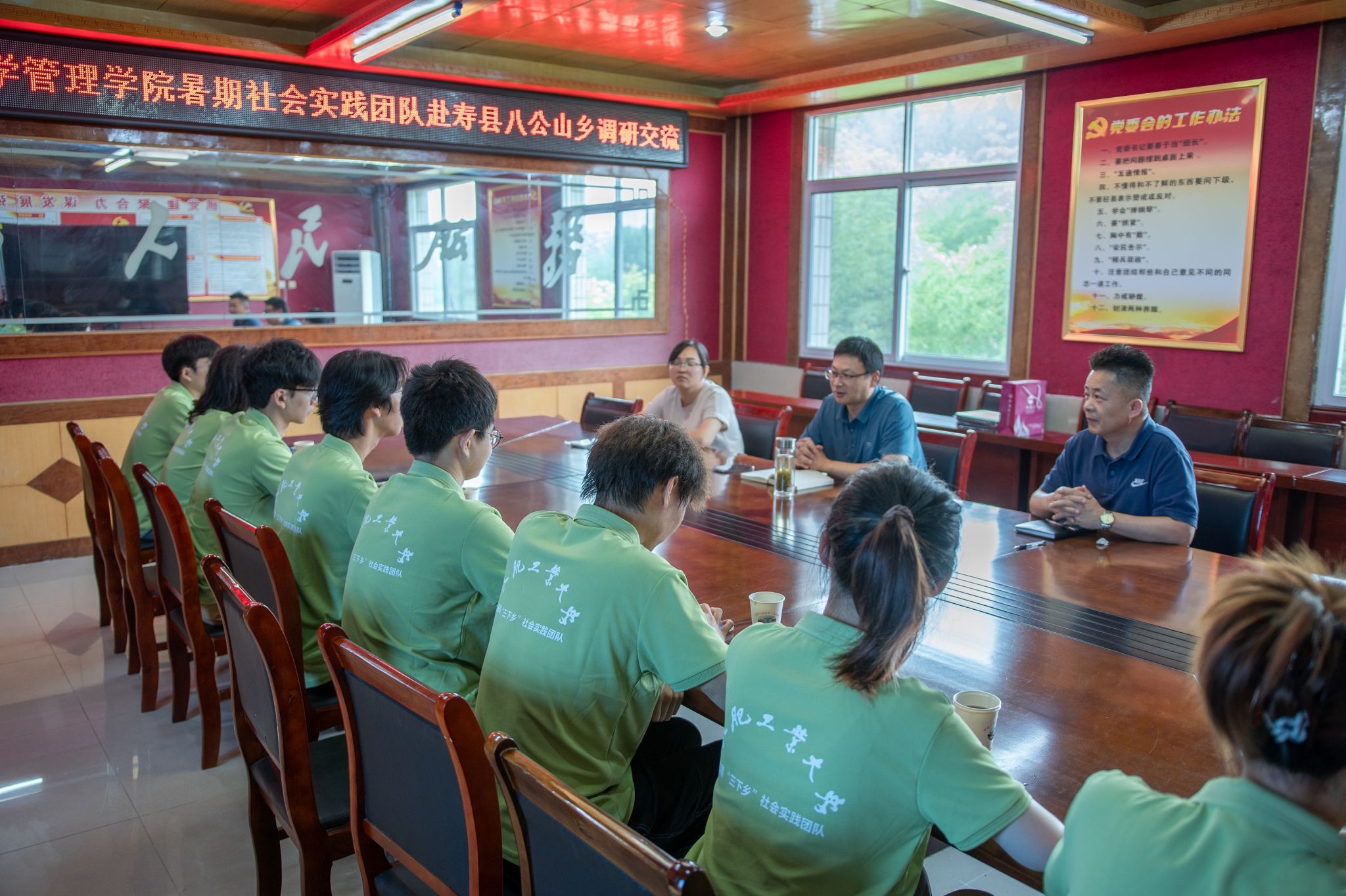 开展座谈交流,共论非遗传承。团队前往八公山区人民政府,与八公山区人大负责人沈涛开展座谈。沈涛对团队一行深入乡村探索精神表示赞赏,并向团队介绍了八公山豆腐小镇的历史和发展情况,希望同学们从青年视角结合专业所学为非遗发展献策献计。
