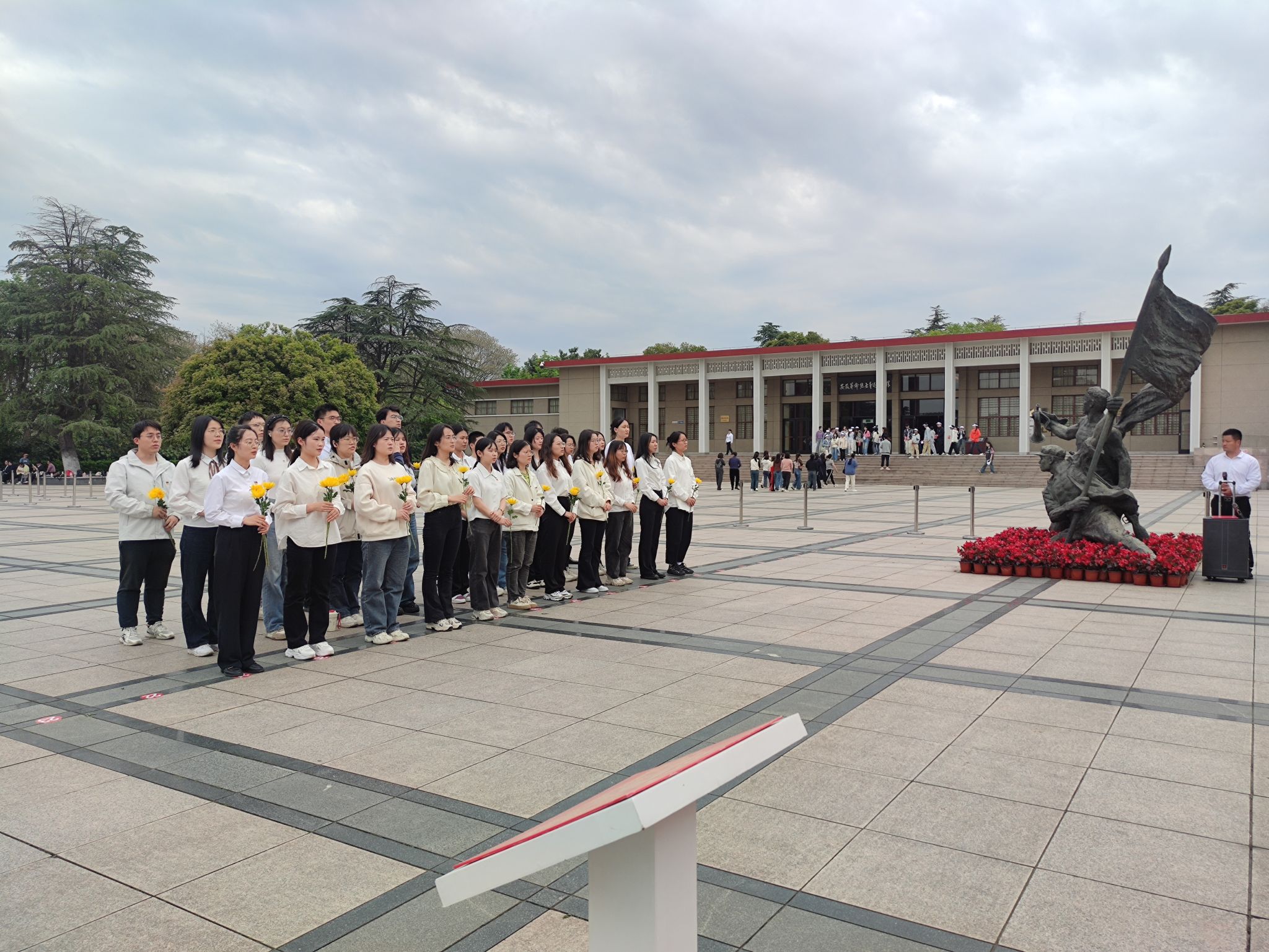 活动开始前,全体参与人员手持菊花伫立于革命烈士纪念碑前,悼念活动在嘹亮的国歌声中拉开帷幕。活动第二项,全体党员及入党积极分子面向革命烈士纪念碑三鞠躬,向为民族解放和人民革命事业英勇献身的革命先烈致敬。随后,在电子商务研究所第一党支部支部书记李奥雪的带领下,全体党员重温入党誓词,全体积极分子移步右侧观摩仪式。最后,全体人员向烈士敬献鲜花。悼念仪式结束后,全体人员瞻仰了坐落在广场两侧的安徽革命烈士事迹陈列馆,以及历史长廊,追随英烈足迹,回顾革命历程,无数英雄的不朽故事令人动容,大家纷纷表示要不忘初心、牢记使命、忠诚信仰、砥砺前行立新功,实现入党时的铮铮誓言。