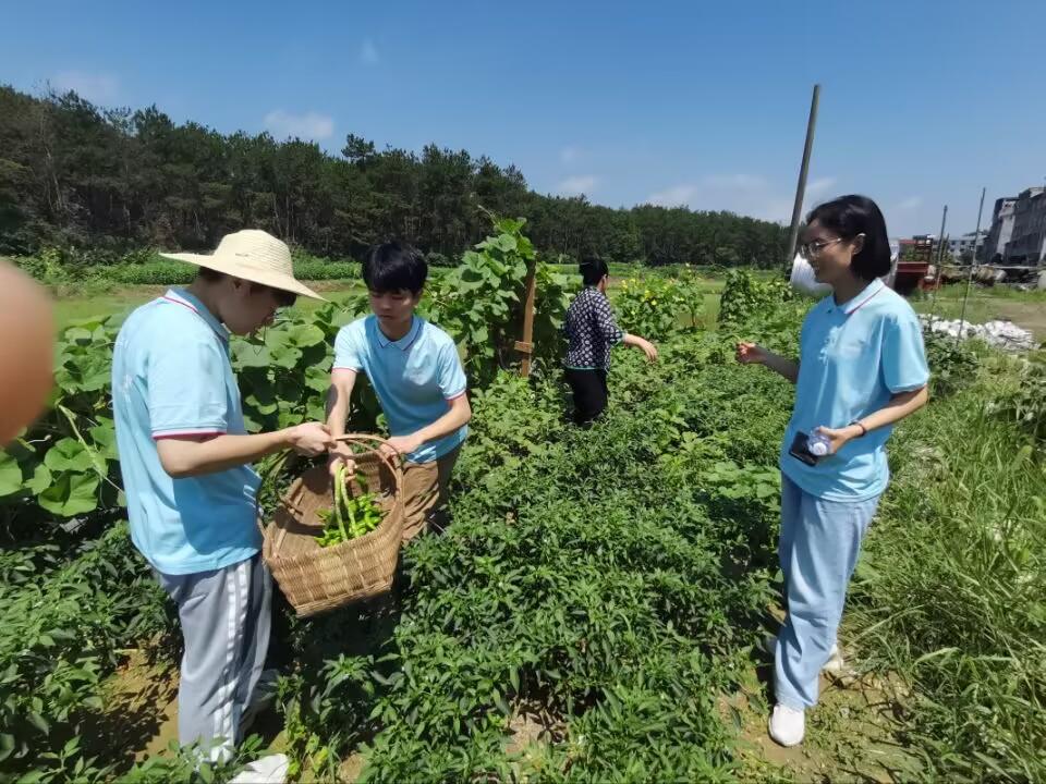实践团首先来到了宿松县山壳佬农产品基地,在创始人洪梅芳的介绍下,了解到当地电商行业发展的现状与规划。为了对电商助农有更切身的体会,团队到了与山壳佬合作的农户的采摘园内采摘辣椒。“农耕劳作是一项非常辛苦的工作,每位农业工作者都值得我们尊敬。篮中的辣椒就是一份份乡村经济发展的期盼”,队员们在阡陌田垄间上了一堂意义非凡的“耕读”课。